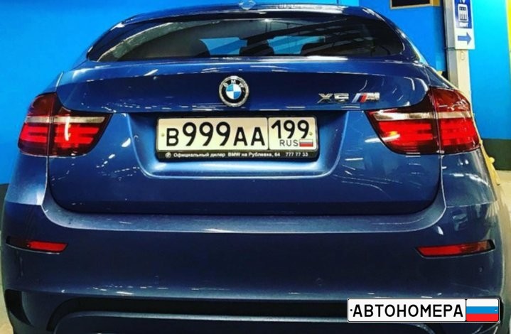 Номер В999АА199 на автомобиле