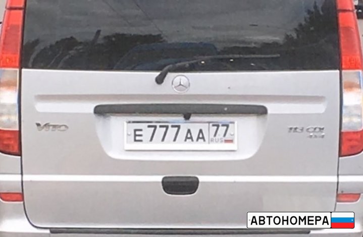 Номер Е777АА77 на автомобиле