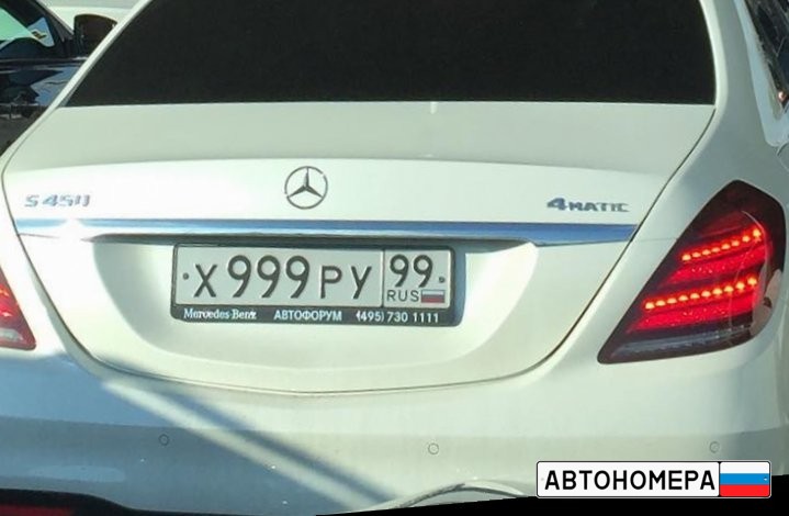 Номер Х999РУ99 на автомобиле