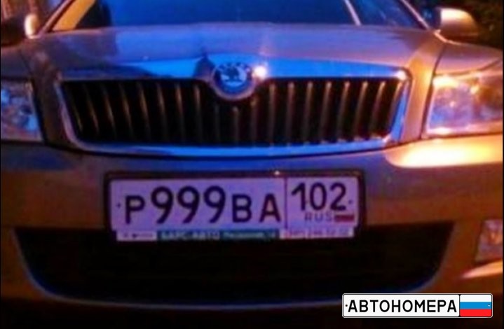 Номер Р999ВА102 на автомобиле
