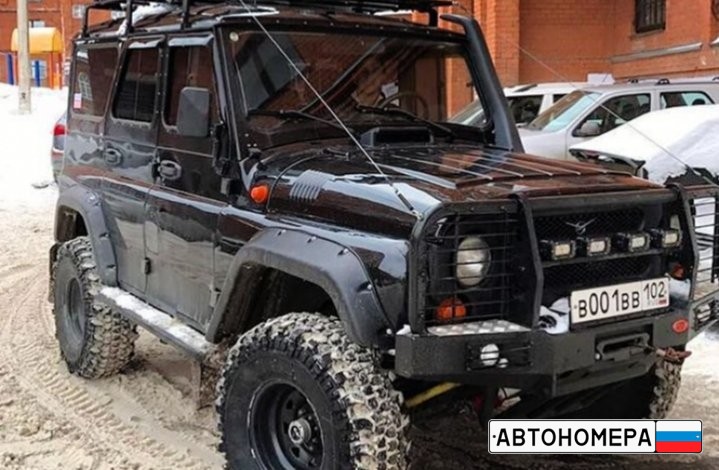 Номер В001ВВ102 на автомобиле