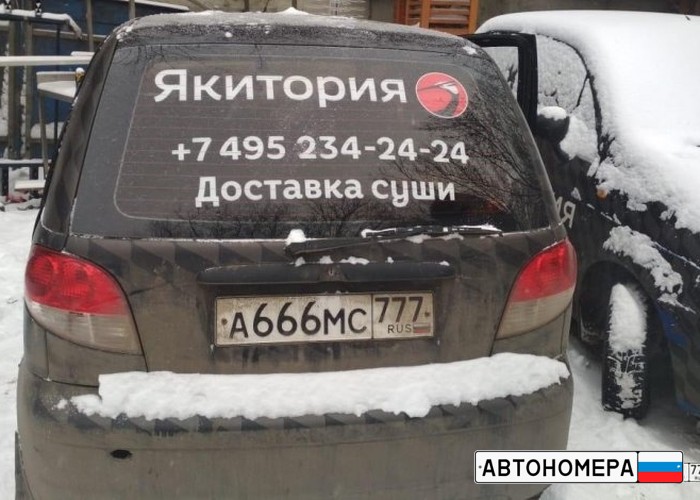 Номер А666МС777 на автомобиле