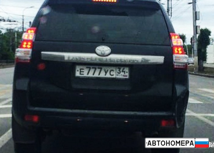 Номер Е777УС34 на автомобиле