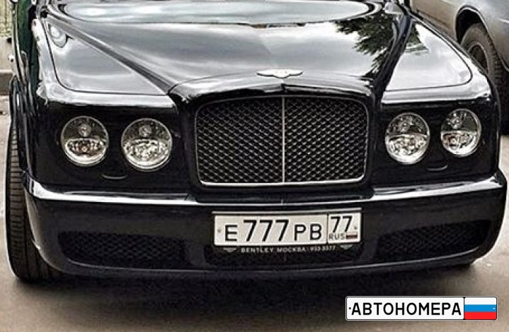 Номер Е777РВ77 на автомобиле