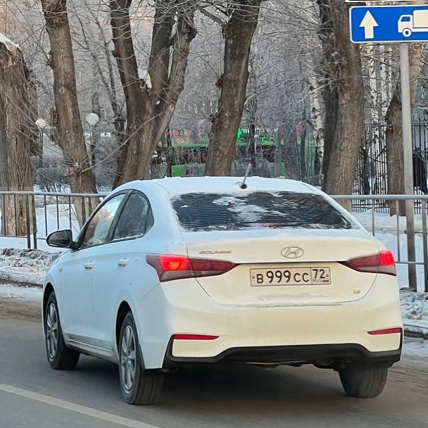 Номер В999СС72 на автомобиле