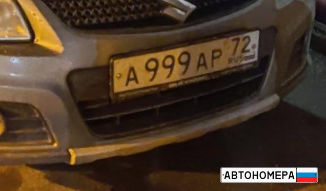 Номер А999АР72 на автомобиле