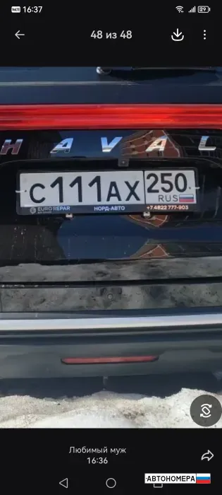 Номер С111АХ250 на автомобиле